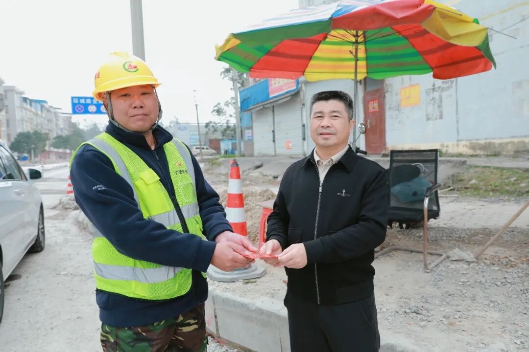 金馬揚蹄啟新歲,瑞氣盈門萬象新。2月17日,農歷正月初一,廣西華業(yè)投資集團有限公司董事長龍其生,集團工會主席鐘麗霞,集團工會副主席兼金花茶酒店總經(jīng)理、華業(yè)職業(yè)培訓學校常務副校長李璟一行,前往華業(yè)城、華業(yè)汽車文化產(chǎn)業(yè)園及防城區(qū)環(huán)城路提升改造項目,慰問春節(jié)期間堅守崗位的一線員工,為他們送上新春的祝福與溫暖。